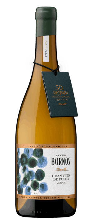 26390 Palacio de Bornos Colección de familia Sergio Hernández Gran Vino- Estuche 3 bot. ¿Qué sucede cuando la tradición y la innovación se unen? Nace Palacio de Bornos Colección de Familia Sergio Hernández Gran Vino de Rueda. Esta edición limitada es el resultado de la técnica más ancestral, con su crianza sobre lías en ánforas cerámicas , y uvas procedentes de viñedos en vaso de más de 50 años, con una estricta doble selección de uva para abordar los más altos estándares de calidad. Esta visión única está plasmada en la obra del artista Sergio Hernández, que adorna una etiqueta que celebra el origen y la cultura. Con cada copa, evocarás el lujo de la paciencia, la distinción de lo limitado , y la seguridad de un vino valorado con 94 puntos Tim Atkin 2025. Ver ficha técnica